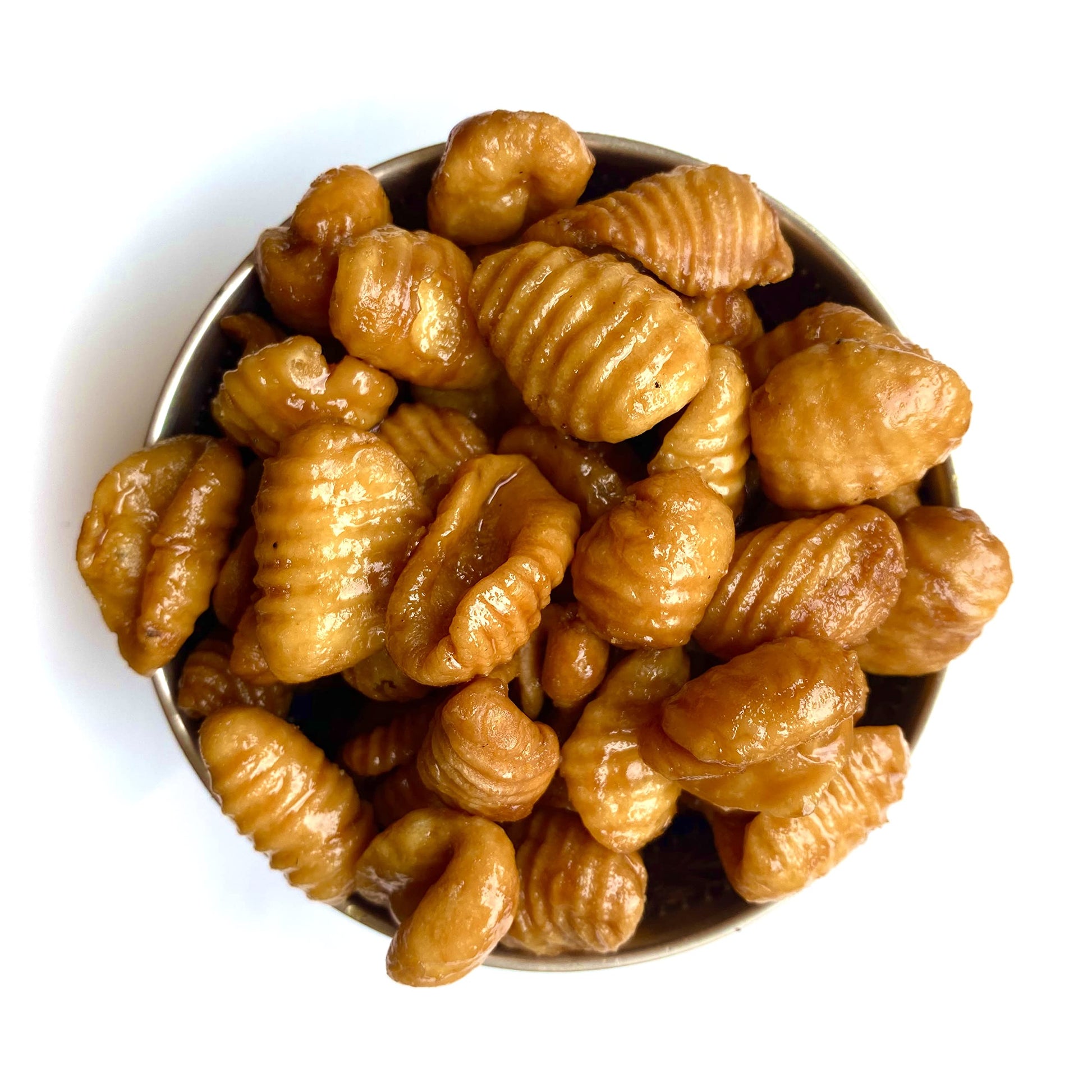 Bellam Gavvalu is a delicate Indian sweet that showcases the art of traditional confectionery. These thin, crispy wafers are crafted from rice flour and bound with pure jaggery, creating a light yet satisfying treat with subtle sweetness. The intricate preparation results in a delicate crunch that dissolves gracefully on the palate, revealing layers of flavor. A beloved choice for festivals and celebrations, bellam gavvalu represents authentic South Indian sweet-making heritage. Each piece is prepared with precision to achieve the perfect balance of texture and taste. Ideal for gifting or enjoying as a refined snack, this sweet appeals to connoisseurs who value genuine, artisanal preparation and time-honored recipes.
